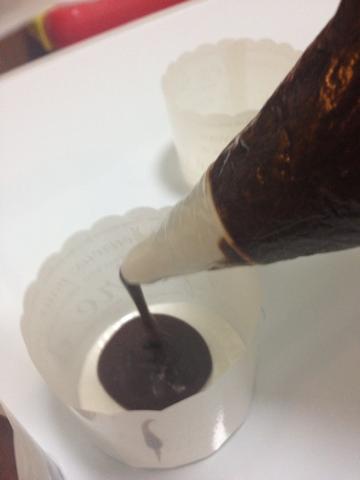 ”スプーンとかで入れてね”と書いてありますがやはりここは自前で絞り袋を用意するのがベターです。(僕の場合スプーンでやると型のフチに付いたり、その結果くっついてきた型を横に倒したりしたほろ苦い思い出があります(笑)チョコに怨念が籠ることになります)